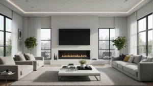 - Simplicité: Le salon moderne se distingue par son aspect épuré, sans surcharge visuelle. Chaque élément doit être soigneusement sélectionné pour éviter tout encombrement inutile.
