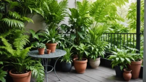 Si vous rêvez de créer une ambiance tropicale sans quitter votre balcon, tournez-vous vers les fougères. Elles ajoutent une texture luxuriante à n’importe quel espace ombragé. Ces plantes vivaces aiment l’ombre et sont parfaites pour les balcons humides et protégés des vents. Leur capacité à absorber l’humidité de l’air et à supporter les climats plus frais en fait un choix idéal. En combinant différentes variétés, vous pouvez créer un véritable écran de feuillage spectaculaire. Les fougères peuvent aussi servir de toile de fond aux plantes à fleurs aux tons vifs, complétant ainsi un tableau végétal vivant.