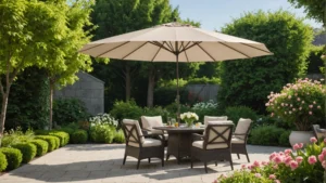 Il est important que votre parasol s’intègre bien avec votre mobilier de jardin. Optez pour des matériaux et des couleurs qui se marient bien ensemble pour un effet harmonieux et cohérent.
