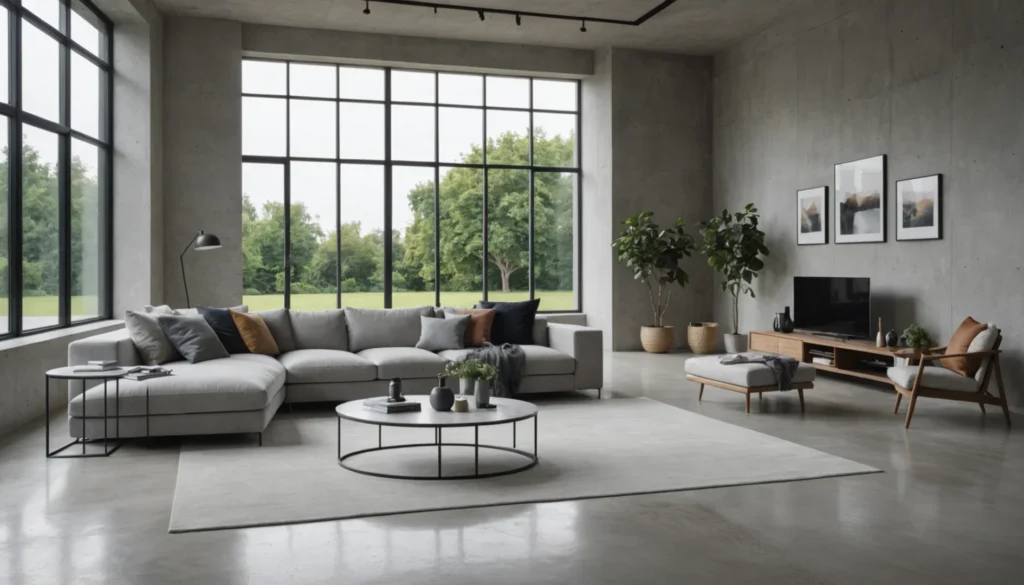 Pour ceux qui préfèrent un style plus urbain, l’association du béton ciré avec le métal et le verre peut renforcer l’aspect industriel et minimaliste recherché. Les designers utilisent également le béton ciré comme toile de fond pour mettre en valeur des œuvres d’art ou des meubles design, grâce à sa capacité à rester neutre et sophistiqué.
